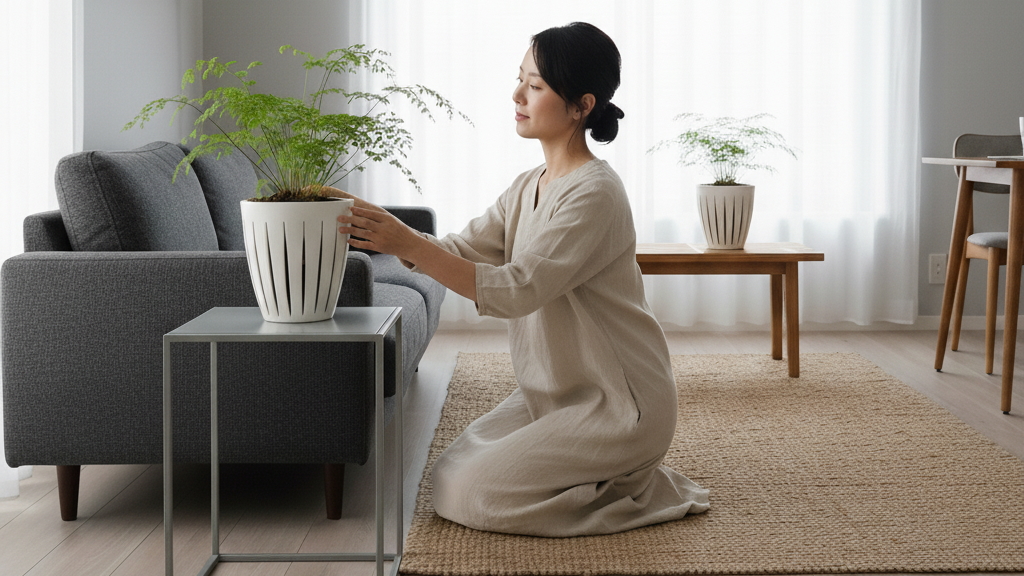 • リビング: 丸い葉を持つアジアンタムは、人が集まるリビングに置くことで、人間関係を円滑にし、家庭内の調和を促すと言われます。家族がリラックスできる空間作りに貢献してくれるでしょう。