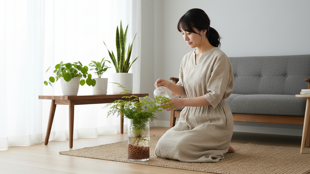 アジアンタムは、土を使わない水耕栽培やハイドロカルチャーでも育てることが可能です。これらの方法は、室内を清潔に保ちたい方や、土の管理が苦手な方にとって魅力的な選択肢となります。