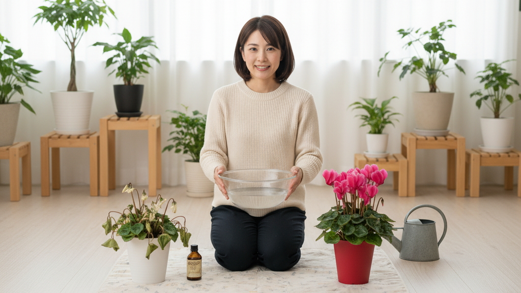 株全体がぐったりして、今にも枯れそうな状態のシクラメンでも、諦める前に試せる復活方法がいくつかあります。前述の通り、根腐れを起こしている場合は植え替えが必須ですが、ここではそれ以外の原因で弱っている場合に有効な総合的な対処法を紹介します。