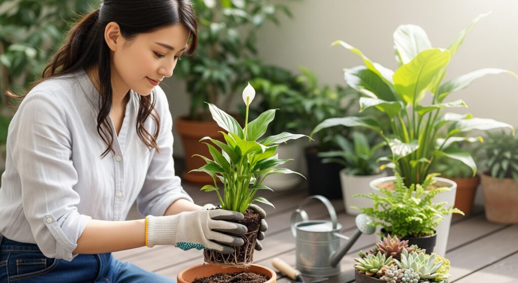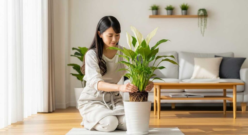 スパティフィラムの花を咲かせるには、適切な時期のお手入れが大切です
